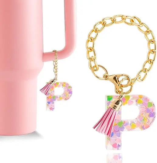 Make your Stanley tumbler uniquely yours with these Cute Initial Letter Charm Keychain Handle Charms! Whether you're looking to add a personal touch or make your tumbler easier to spot, these letter charms are the perfect accessory. Designed for women and girls, these adorable charms attach securely to the handle of your Stanley cup, adding a pop of personality and style wherever you go.