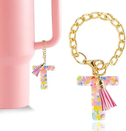 Initial Letter Charm Keychain Handle Chains for Stanley Cup